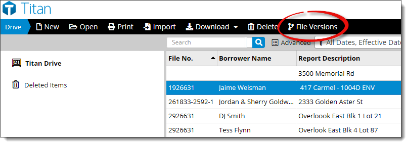 - Select the file and click File Versions in the toolbar at