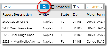 The Appraisal Desktop provides two ways to search for reports: a basic search tool for simple searches and an advanced search tool for more specific searches.