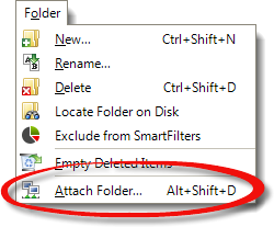 If you need to remove the attached folder at any later time, just right-click it in the Folders panel and choose Disconnect Attached folder from the menu that appears.