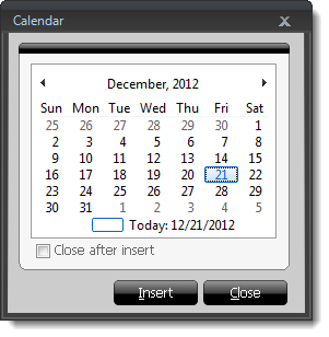 click Insert. If you want the calendar to close automatically