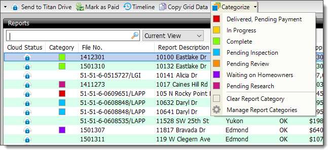 - From the Appraisal Desktop, click Categorize and select