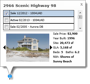 - In the Property Information Balloon, select the data source to use by checking the box beside it.
