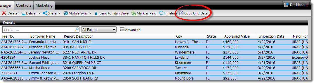 - With the Appraisal Desktop open, highlight the reports you want to copy