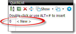 - Double‑click New in the QuickList pane,