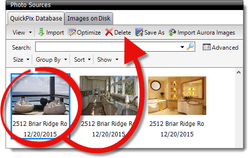 To Delete a photo, simply select the photo (or photos) from the list and click Delete.