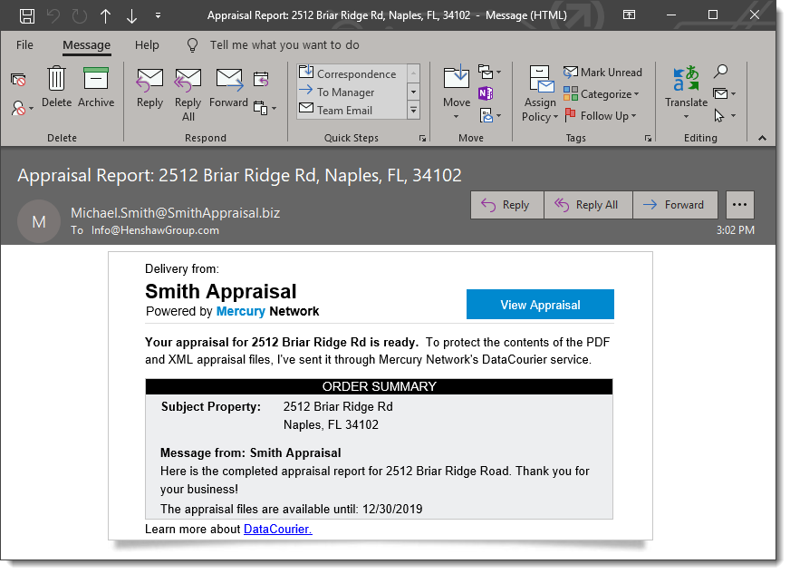 report. Once your client clicks the View Appraisal link in the email, a