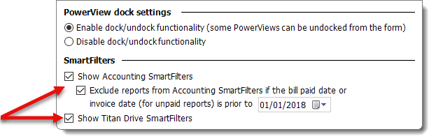 Show Accounting SmartFilters and Show Titan Drive