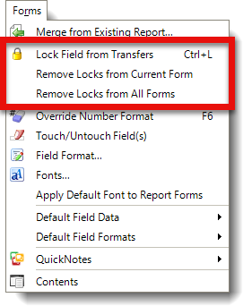 Field locks are used when you need to override the data that TOTAL automatically transfers into a field from another area of your report. To lock a field from transfers: