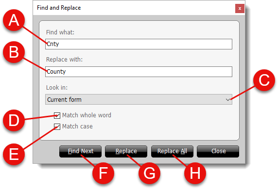 - Click Find Next to locate the first instance that
