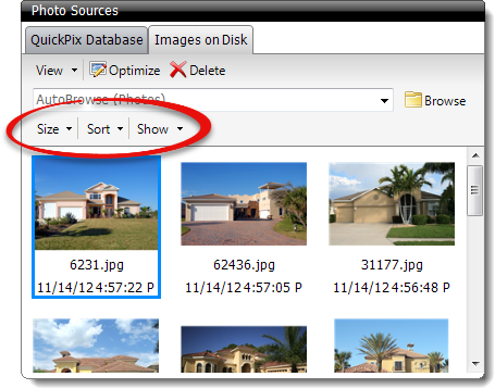 The Images on Disk Tab allows you to select how you view