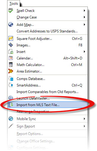 The Import from MLS Text file function allows you to take exported property data from a data source, such as your MLS, and import it directly into your report. Most appraisers have access to one or more MLS systems from which they can pull data, and historically, that meant printing and transcribing property records into the comp grid by hand. Instead, TOTAL can help you import that data automatically in a fast and consistent matter. Each time you want to reuse data from your MLS, you'll be able to use the same import process over and over.