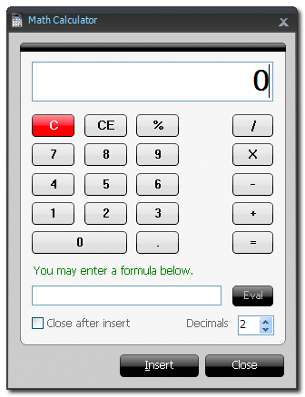 Calculator can accept basic Excel-like formulas to assist you in making your