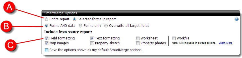 When it's faster to copy data from one, or several, old reports than to type it out in a new report, use the SmartMerge utility to merge data from another report into your current report: