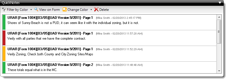 - Click Filter by Color in the QuickNotes toolbar to toggle
