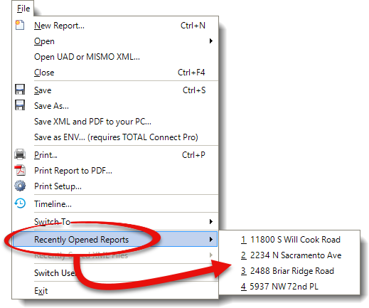 New in TOTAL is a feature that automatically checks for duplicate reports and alerts you when it finds more than one copy. As you access each appraisal report, TOTAL tracks the last 100 most recently opened files and stores the information in an XML file. Any time you open a report in TOTAL, it cross‑references this list and checks for any report that has the same file name or file description. If it finds a match, it then displays a window to alert you that more than one copy of this report exists.