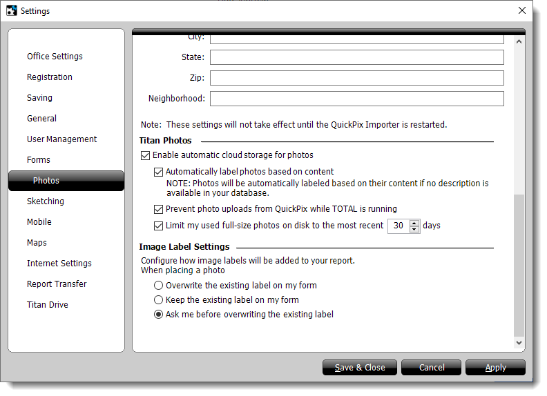 If you need access to the full‑size image, TOTAL downloads it from Titan Photos automatically when you place the image in a report. If you're not online, you're prompted to use the local thumbnail or go online to retrieve the full‑size image.