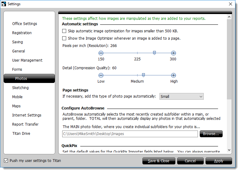 TOTAL's image optimization settings are preset to those which have been tested to return the best results overall. However, it's possible that you can adjust these settings to achieve better quality for your own images. To change TOTAL's photo settings: