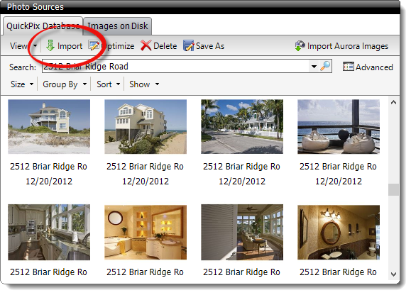 QuickPix allows you to preview thumbnails of images before importing the entire picture. It allows you to assign a description, address, city, state, ZIP code, and notes to one or multiple pictures and then allows you to choose which photos to retrieve before inserting them into your QuickPix Database. Follow the instructions below to import photos using the QuickPix Importer, or click here to jump to view a rundown of the basic functions of the QuickPix Importer.