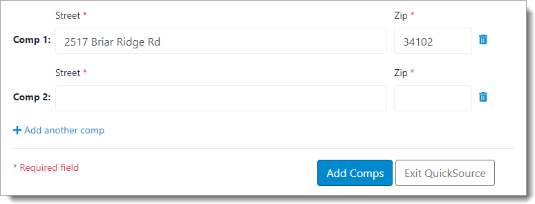- When you're finished, click Add Comps on the lower right
