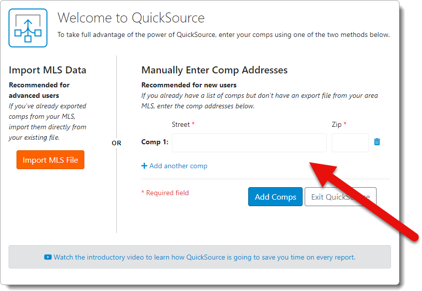 - If you haven't added comparables to your report, you're prompted to import an MLS file, or