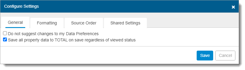 You can also check or uncheck the Save all property data to TOTAL on save regardless of viewed status box to disable or enable the ability for QuickSource to save all data to TOTAL every time you choose to save your progress.