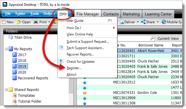 Occasionally you may need to re‑register TOTAL with new registration information. To manually register TOTAL: