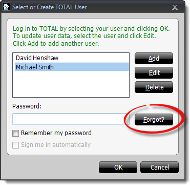 Follow the instructions below to reset the password for a TOTAL user
