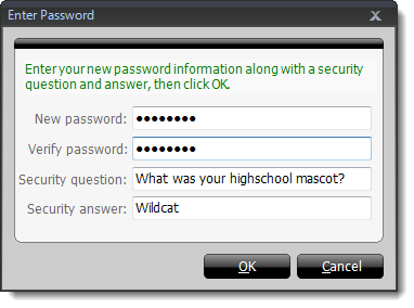 Answer the security question and click OK.