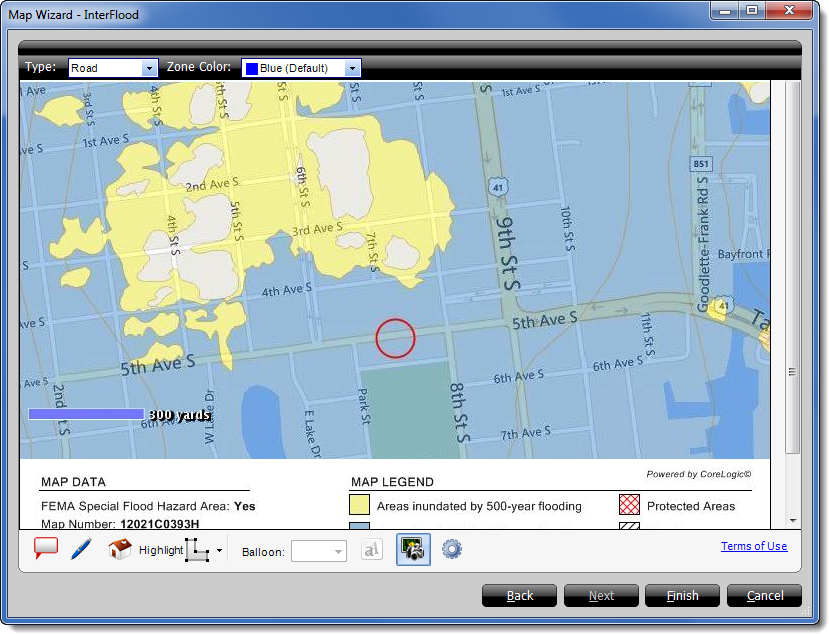 To retrieve a flood map for your report: