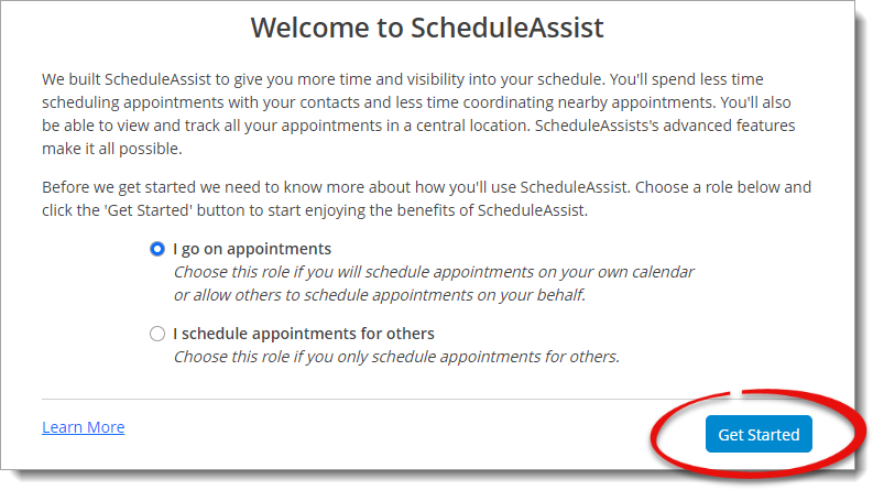 If you chose the I schedule appointments for others option, no further setup is necessary and you're ready to schedule your first appointment. Click here for instructions on how to schedule an appointment.