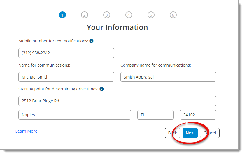 The name and company name entered here are used in messages to your contact, and the mobile number you enter is where automated notifications from ScheduleAssist are sent.