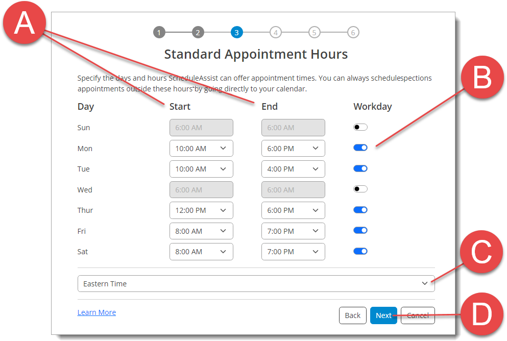 Follow the instructions below to complete the first time setup in ScheduleAssist. Once you complete the first time setup, you can edit or update this information at any time in the ScheduleAssist Settings.