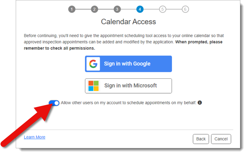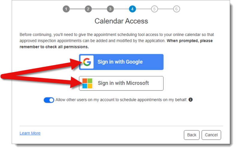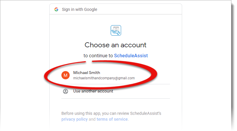 The calendar you choose here is the only one ScheduleAssist interacts with. Other than creating, editing, and canceling inspection appointments, ScheduleAssist only views the dates and times you have blocked off your calendar as "busy". ScheduleAssist doesn't record, store, or use any other information.