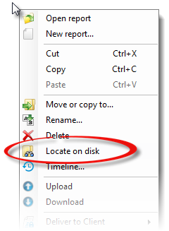 This opens the folder directly on the disk where the report is stored and gives you direct access to the file.