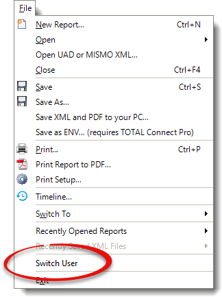 clicking File on the upper left and selecting Switch