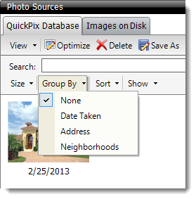 - Click the Group By drop‑down menu to separate and group your photos by the