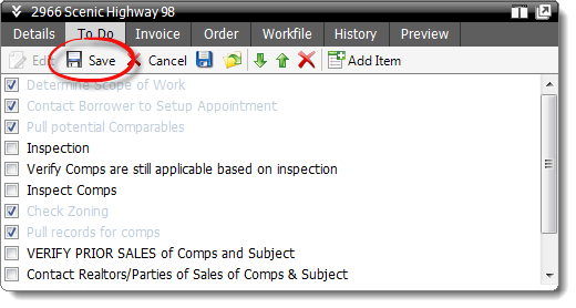 The To Do tab in the Appraisal Desktop's Info Pane works similarly to the way