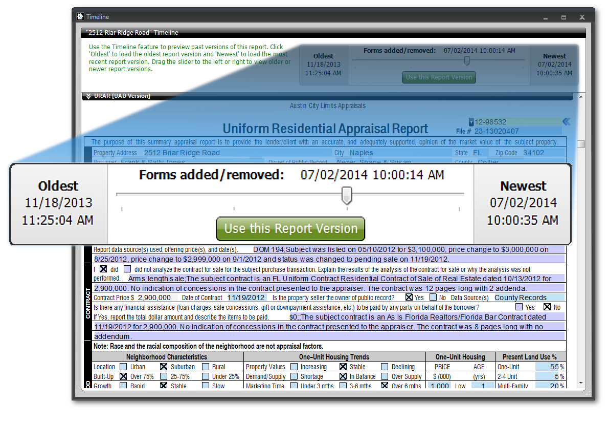- Click Oldest to view the oldest version of the report.