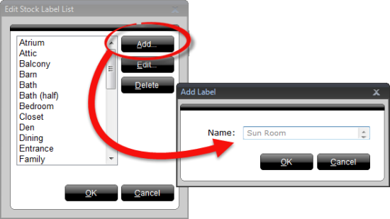 - Click Add in the window that appears, enter the label