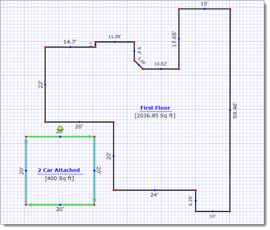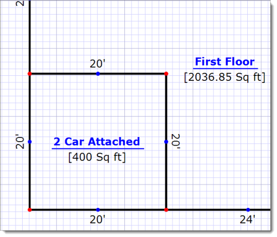 - Let's say you want to add a 20' × 20' garage on the lower left