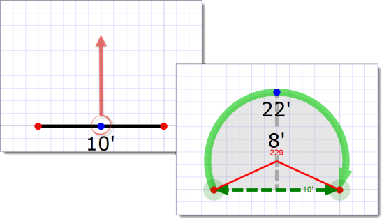 To draw arcs in TOTAL Sketch, first determine the diameter and height of the arc. Then, follow the directions below to translate the data to your sketch: