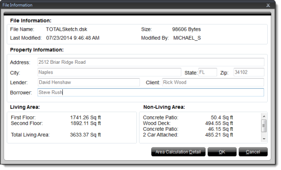 TOTAL Sketch provides quick access to a sketch's details — including area calculations, property information, and file information through its Sketch Details. To access your sketch's details:
