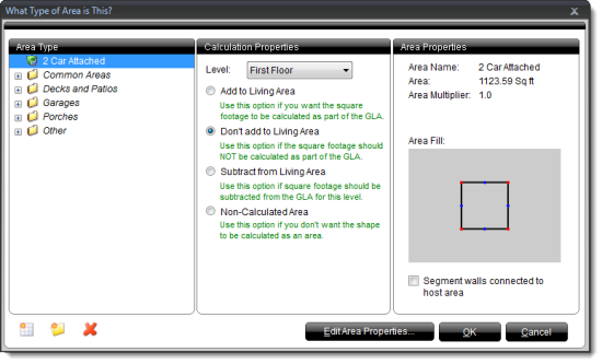 When sketching in TOTAL Sketch, defining an area (first floor, garage, etc.)