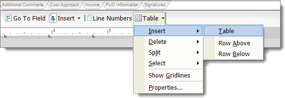 - Insert, Row Above/Insert Row Below - Add a row above or