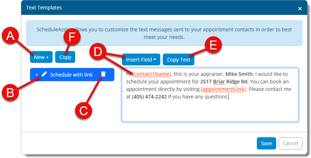 ScheduleAssist allows you to customize the text messages sent to your