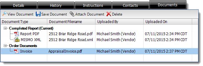 Delete — Deletes the currently selected order