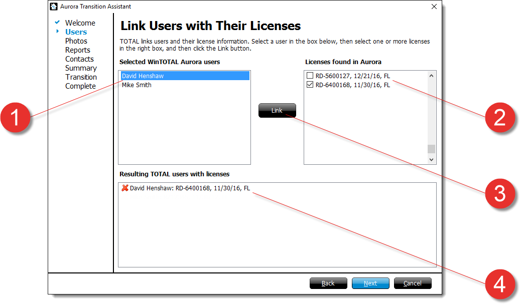 Choose which Aurora users to move to TOTAL. Place a check in the box beside each user you want to import. Then, click Next.