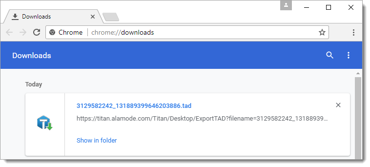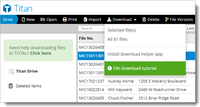 Before you retrieve a file from Titan Drive for the first time, install the File Downloader Utility. If you're using TOTAL, the File Downloader Utility is included in an update. So, just make sure you have the latest TOTAL updates before you continue. Click here for instructions on getting updates in TOTAL.