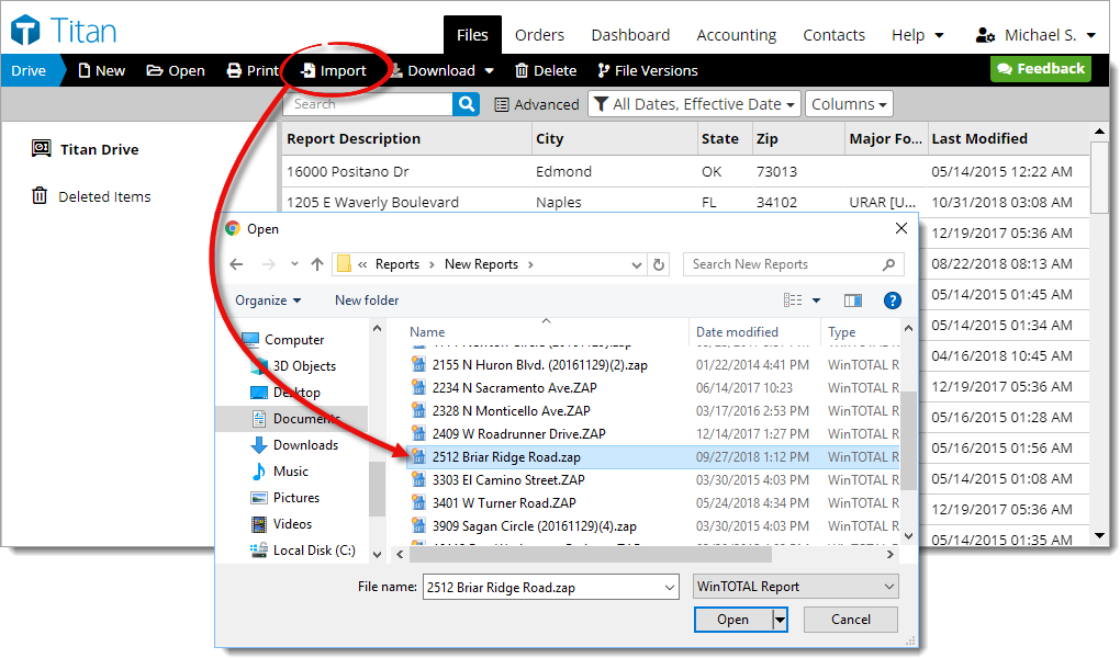 If you prefer not to use the automatic backup feature, or you need to upload a file before the scheduled time, you can upload individual files through Titan's Appraisal Desktop: